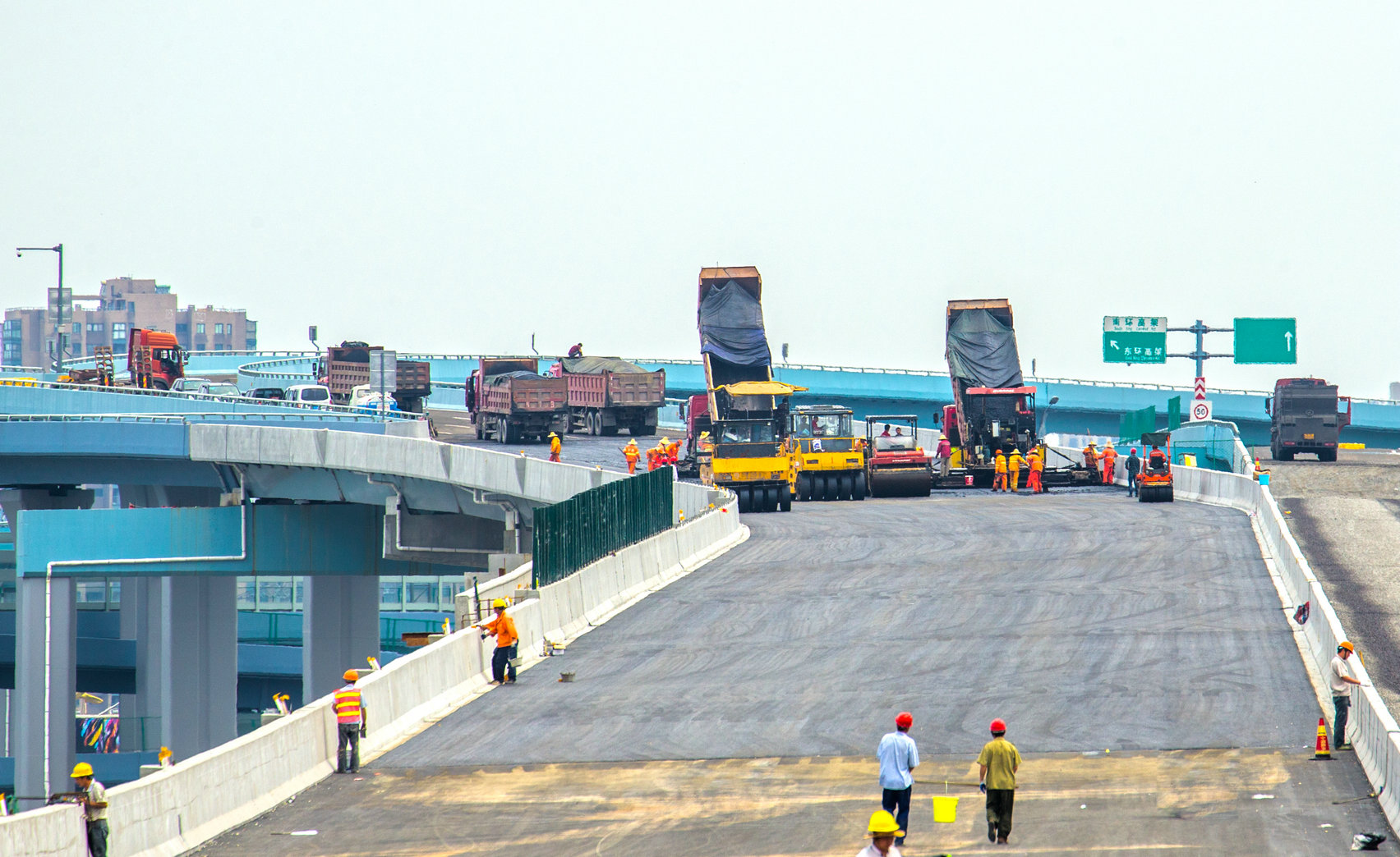 世纪大道快速路项目沥青摊铺结束