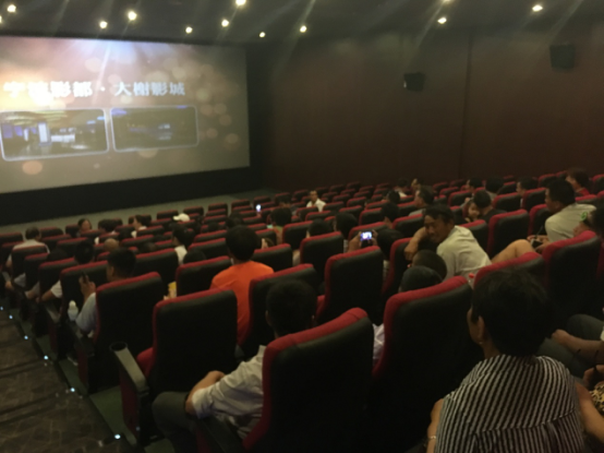 晚上七点半,下工没多久的工人们穿上了他们平时最整洁大方的衣装,带着些许期盼,来到了影都特别提供的160人包场的大影厅,许多工人照旧第一次戴上3D眼镜寓目影片,整个历程紧张又美好。