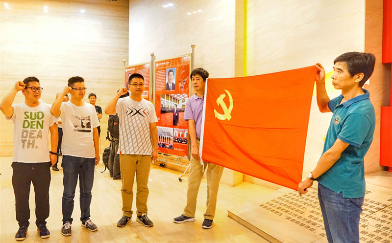 新党员面对党旗,举起右拳庄严宣誓。坚定有力的誓言在广场内回荡,在场的每一位同志都接受了一次深刻的党性教育和灵魂洗礼。