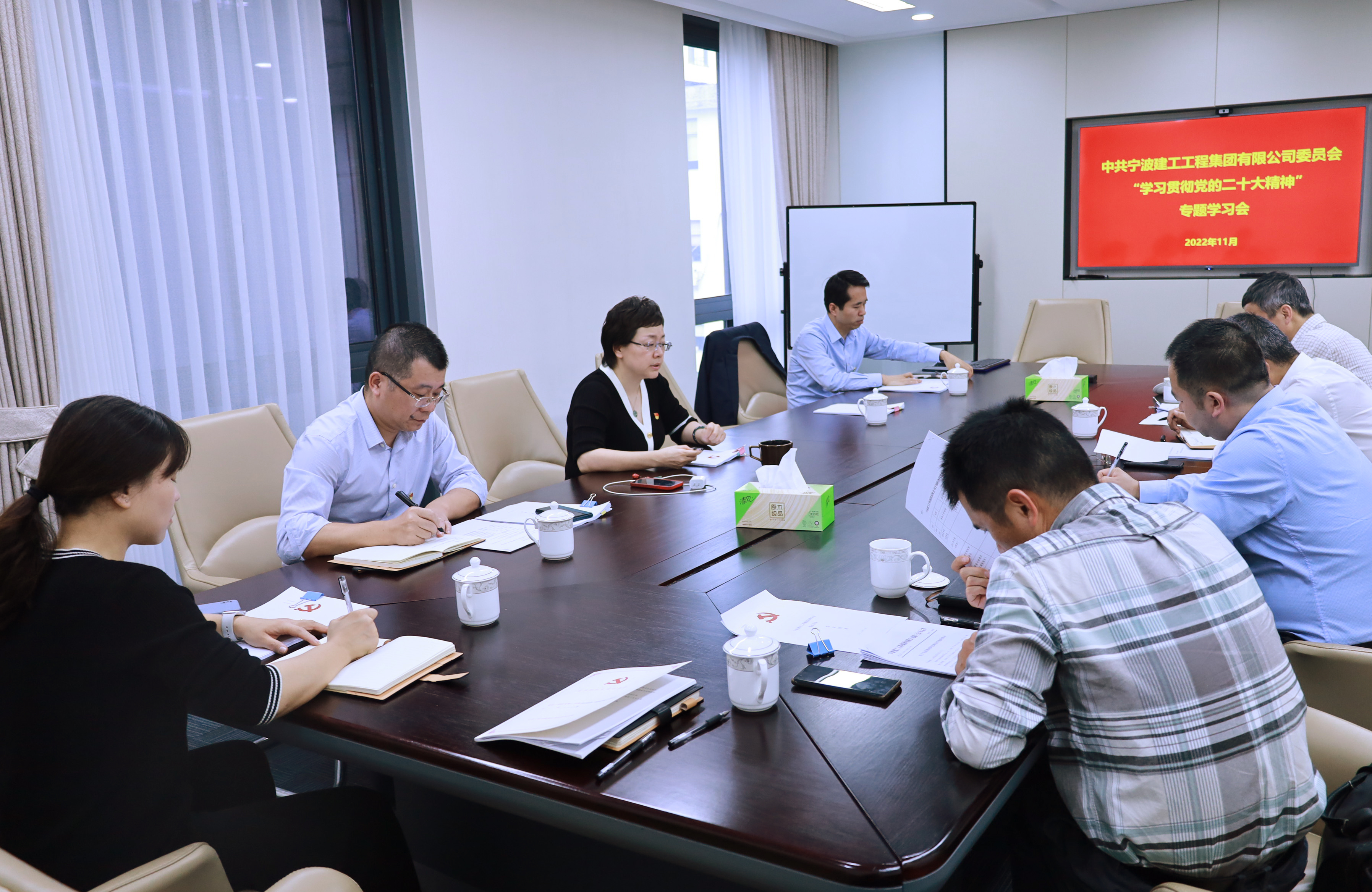 11月10日下午,宁波多宝平台集团党委组织召开专题集会,专题学习贯彻党的二十大集会精神。党委书记陈静及公司党委委员出席集会。